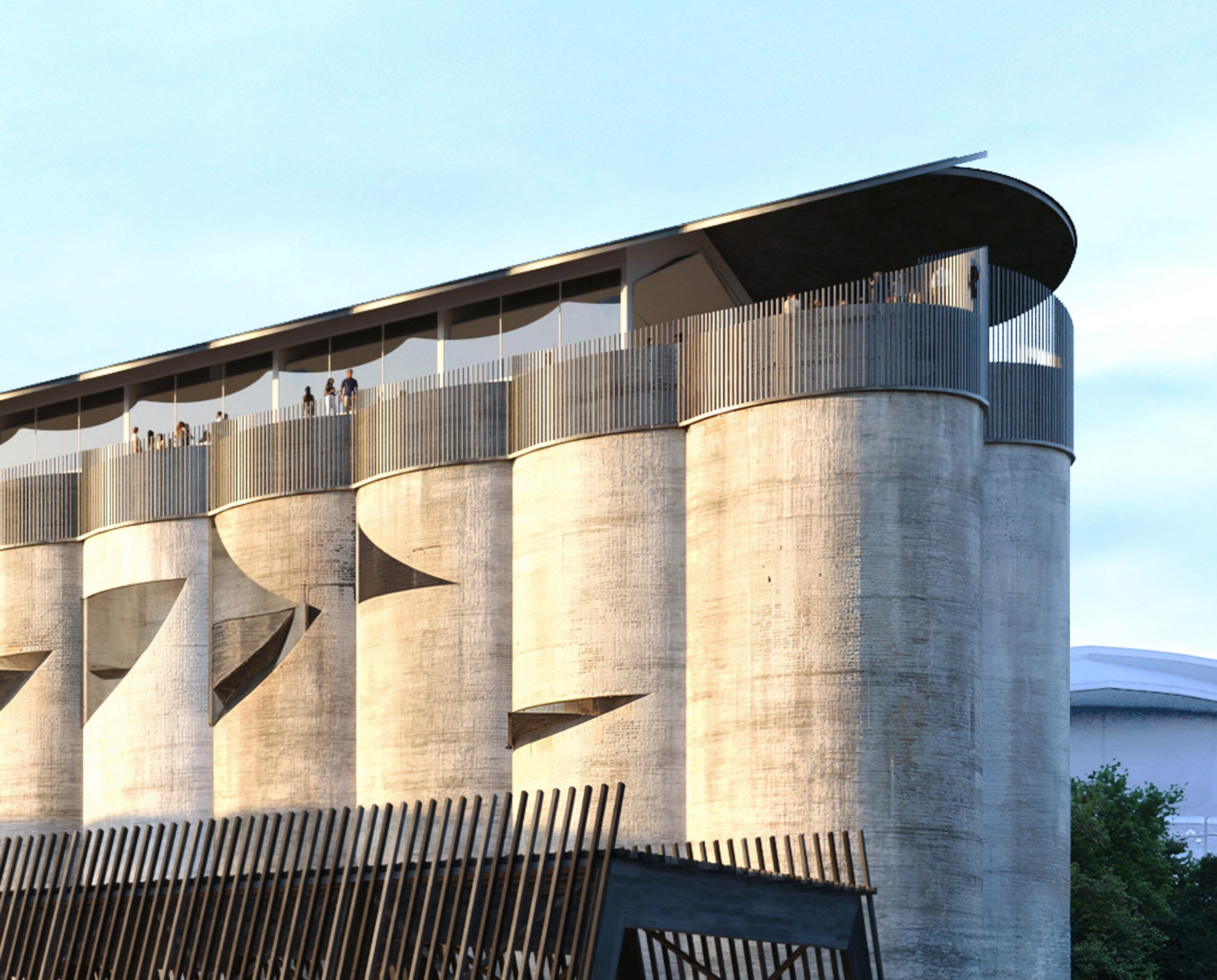 Комплекс состоит из 46 бывших силосов, переосмысленных для современного использования. Прежде это был объект международной компании Louis Dreyfus Co для переработки зерна в начале XX в. Сегодня постиндустриальная зона давно заброшена, но проект Albina Riverside обещает вдохнуть в нее новую жизнь, культуру и экологическую гармонию.