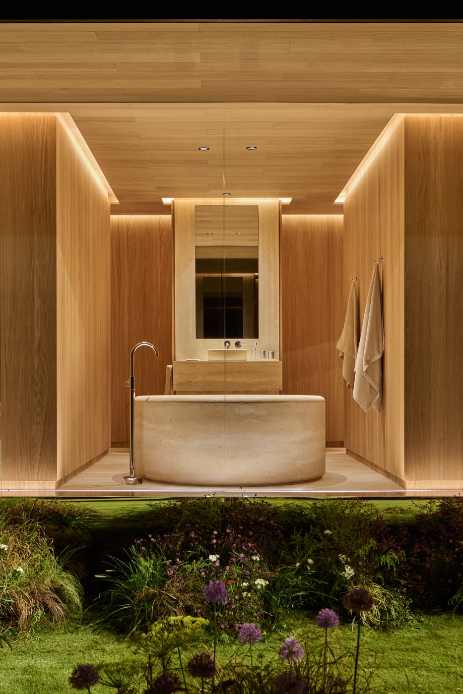 DROPHAUS — это не просто арт-объект, а префабрицированный жилой модуль из дерева. И здесь важен посыл: будущее жилья — не в избыточности, а в продуманности. В «доме-подиуме» есть всё необходимое для жизни: гостиная-столовая, спальня, отдельная комната для прослушивания музыки. Никакой показной роскоши — только функция, масштаб человека и уважение к повседневности.