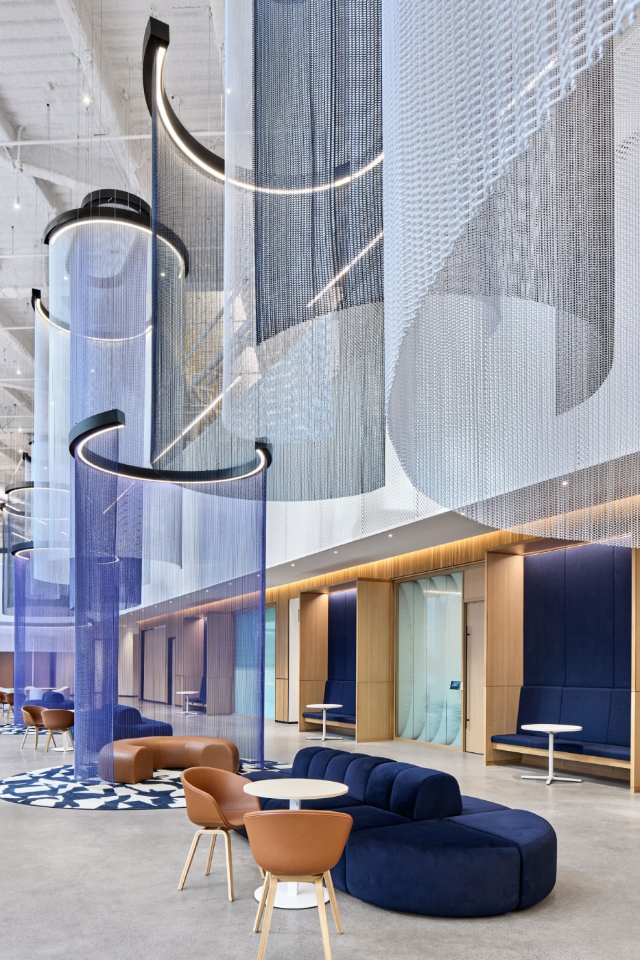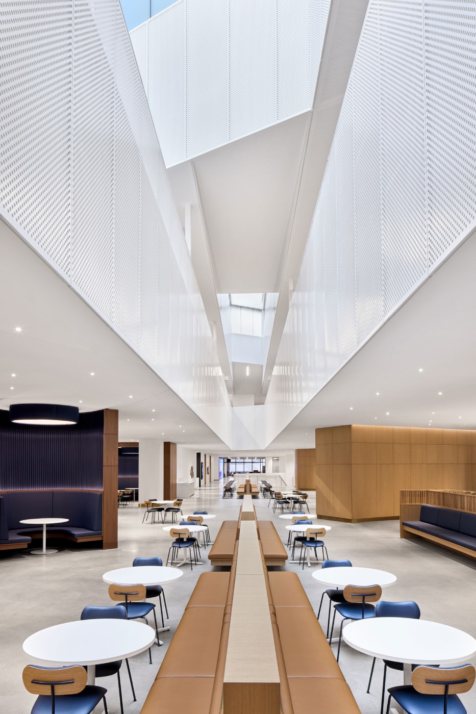Центр здания формируют цифрово оснащенные атриумы, которые становятся точками тяготения и общения.