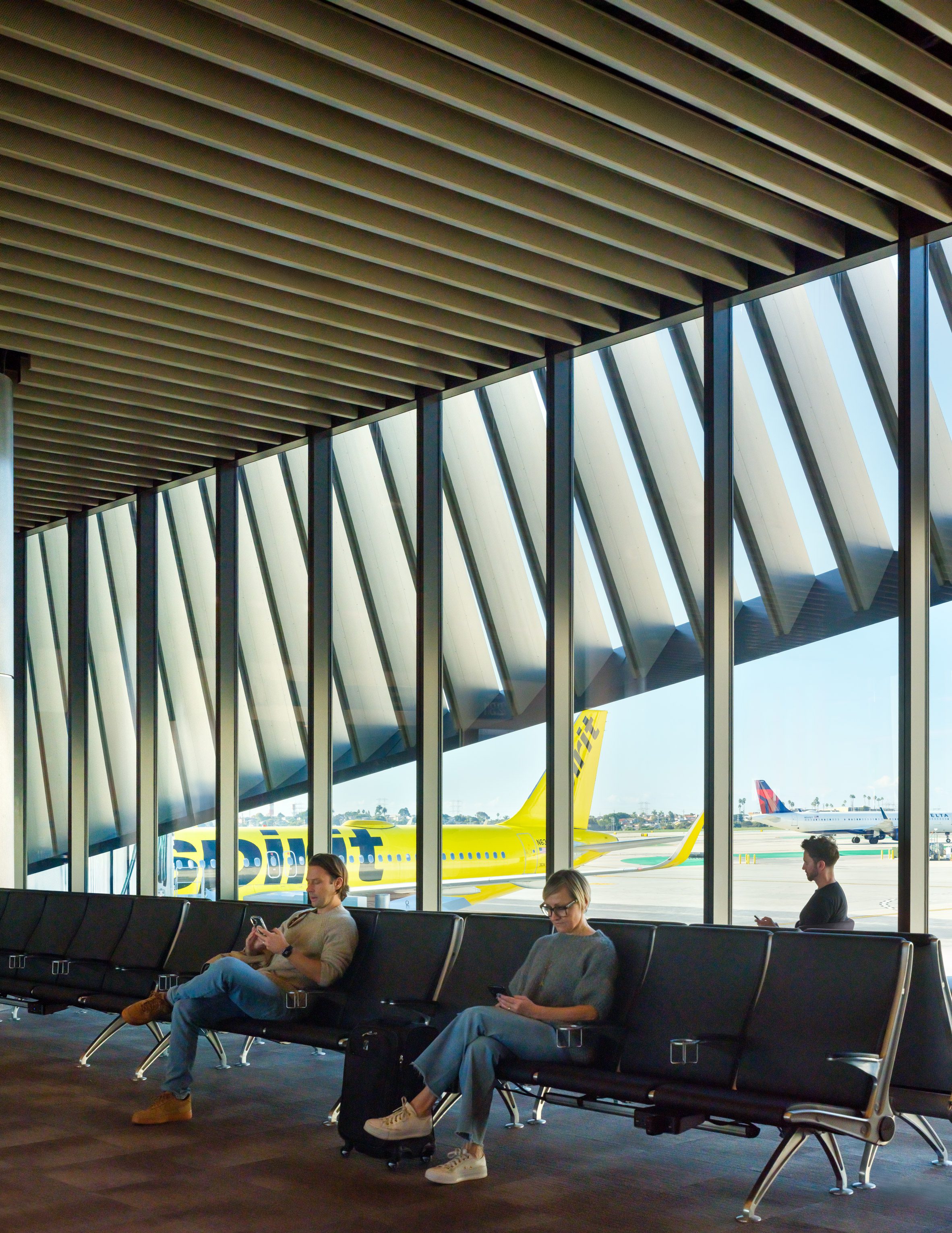 В результате терминал выглядит лёгким, несмотря на масштаб, — как будто он собран из модулей, готовых к движению.