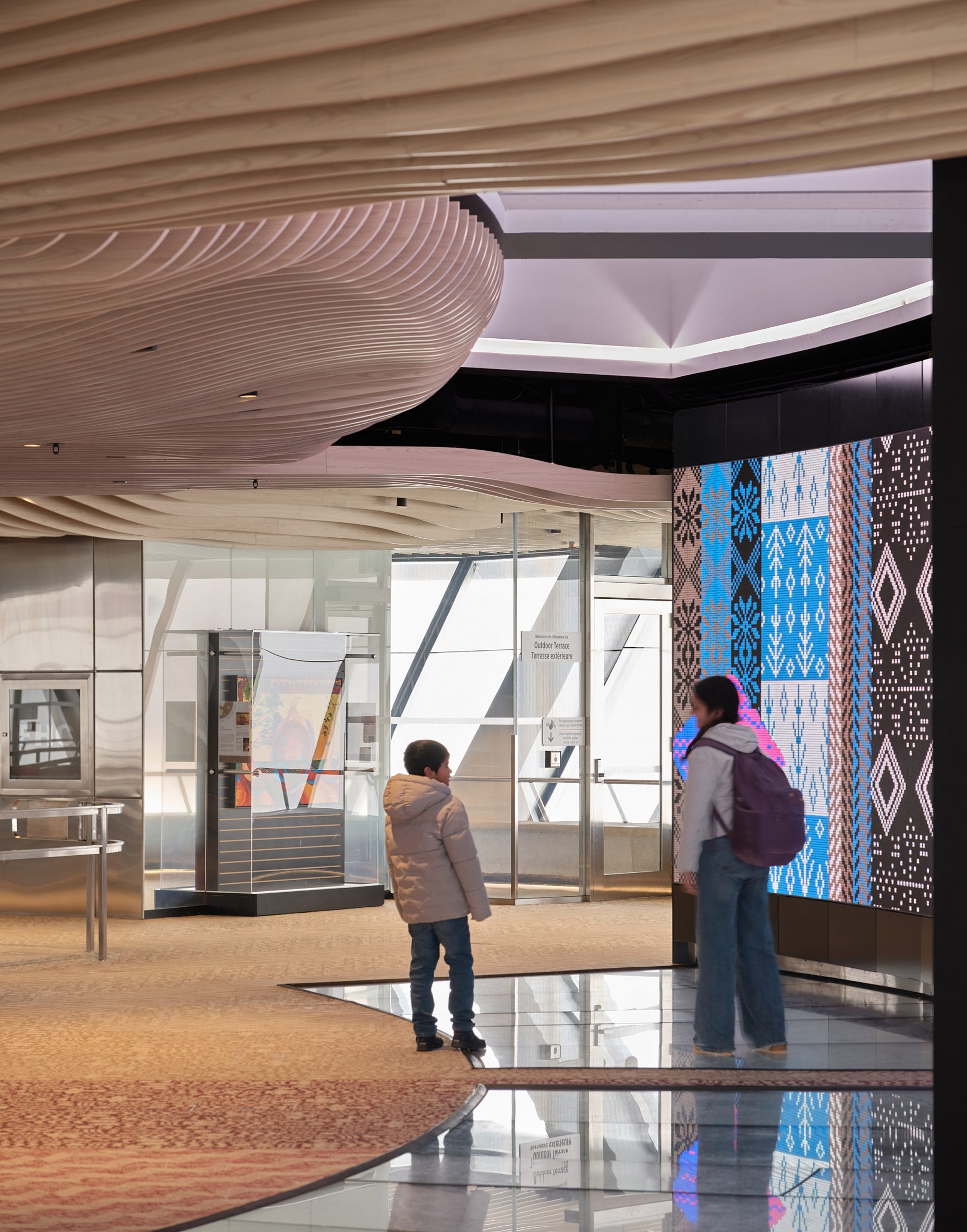 Обновлённый интерьер сочетает современную эстетику с теплотой и органичностью, которые так ценятся в канадской архитектуре. Фасеточные панели, мягкие линии и естественные материалы создают атмосферу, где технологии и природа гармонично сосуществуют. Такой подход делает смотровую площадку не просто туристическим объектом, а настоящим «памятником канадской жизни», где отражается дух города и культуры страны.