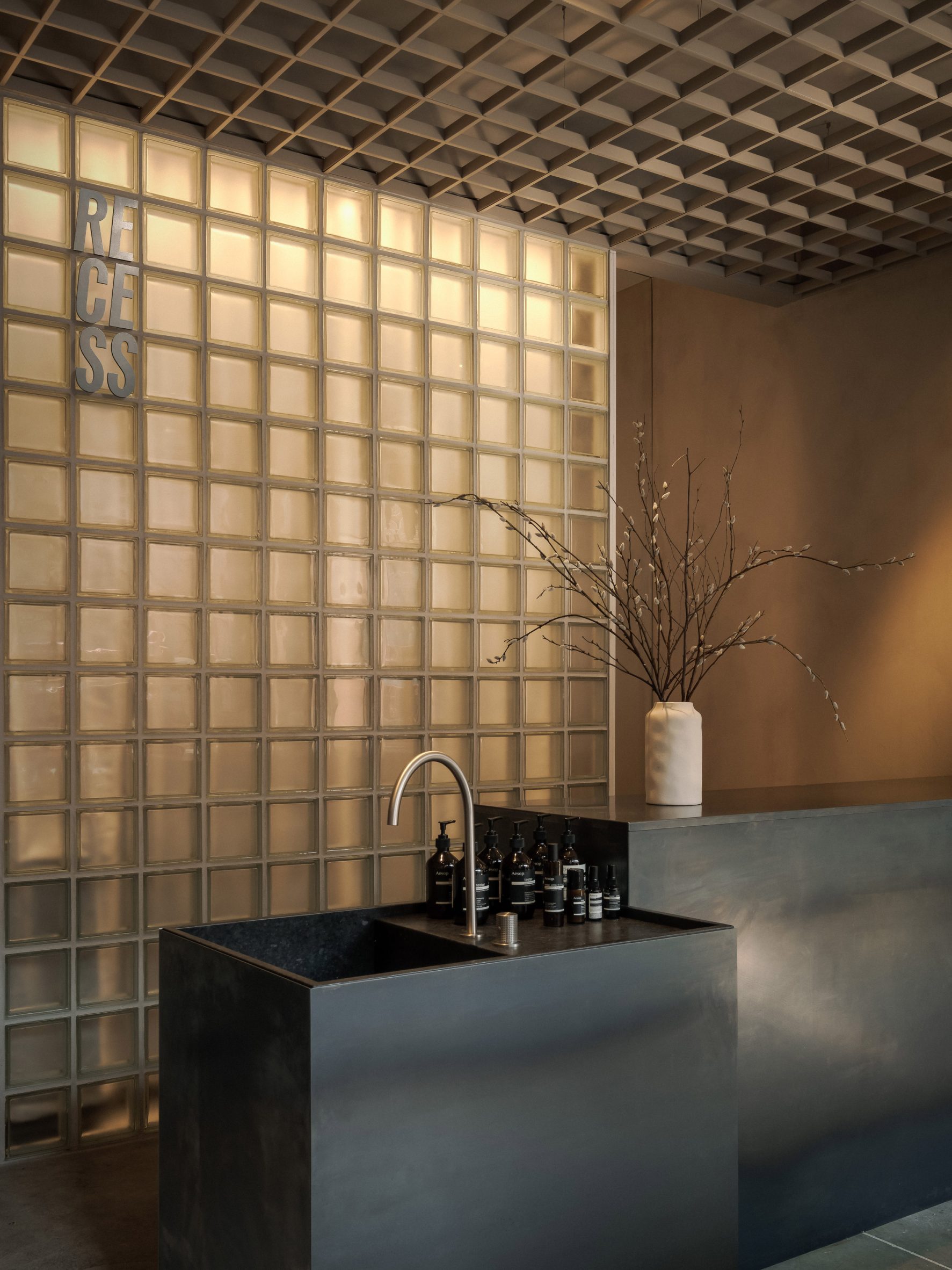 Проект реалізований брендом Recess у партнерстві з Aesop, який виступив постачальником продуктів та зручностей. Це рідкісний випадок, коли комерційна співпраця не нав'язується простору, а органічно вплітається в архітектурну концепцію.