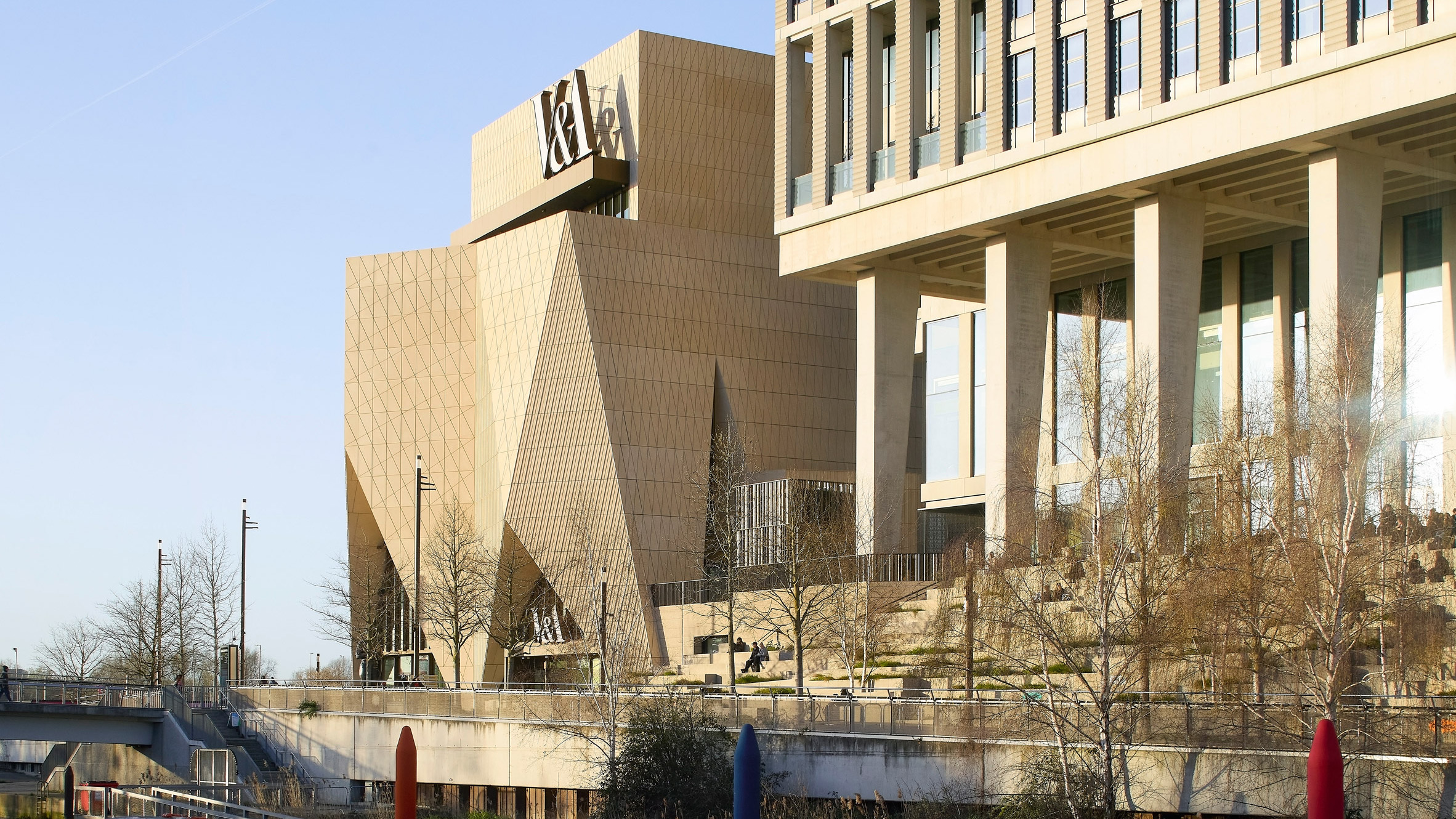 Музей V&A East не лише привертає погляди, але й органічно вписується в контекст Олімпійського парку. Його розташування навпроти стадіону та поруч із освітніми закладами створює візуальний діалог між масштабами й функціями міської архітектури. Відвідувачі зможуть оцінити будівлю як ззовні, так і всередині — кожна деталь продумана для того, щоб взаємодія з простором була комфортною й естетично насиченою.