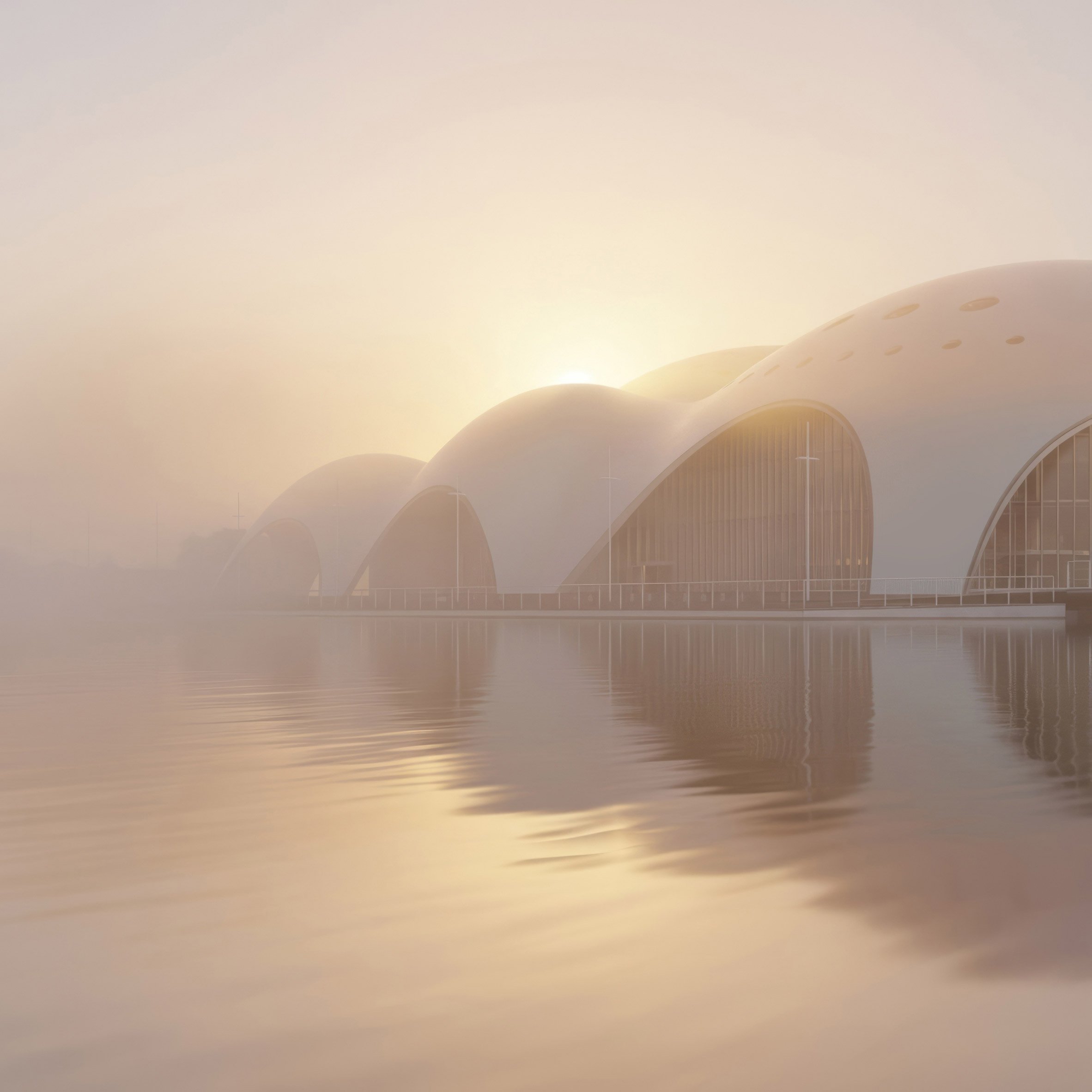 Головна особливість будівлі — її перламутровий зовнішній вигляд, який змінюється залежно від освітлення та часу доби. Такий ефект досягається завдяки поєднанню спеціального бетону та архітектурного дизайну, що створює плавні, округлі форми.