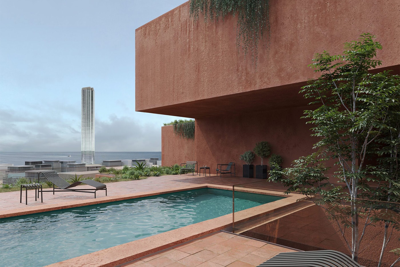 Зміщені обсяги утворюють «кишенькові сади» та просторі відкриті майданчики з видами на рівнину Месогея та затоку Евбея. Мешканці отримують не просто балкон, а повноцінне продовження житлового простору на свіжому повітрі.