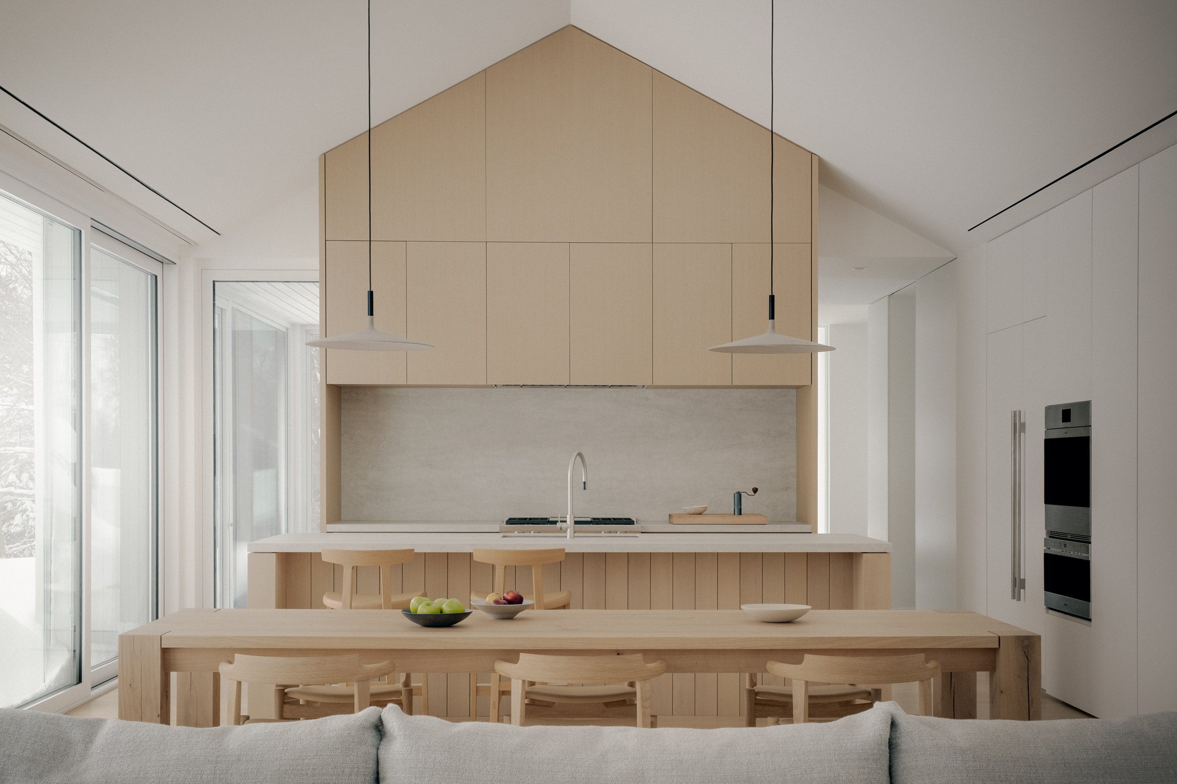 Архітектори зробили ставку на «навмисне напруження» між минулим та сьогоденням. Форма будинку — з двосхилим дахом — відсилає до місцевих традиційних будов, знайомих кожному мешканцю Онтаріо, а сучасне оздоблення та мінімалістичний інтер'єр показують, що це зовсім інший, новий рівень архітектури.